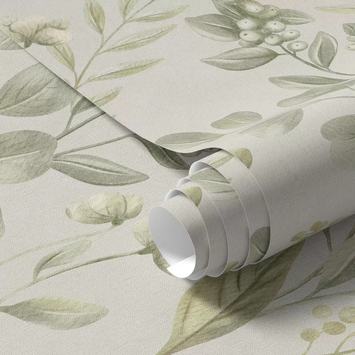 Papel tapiz Eucalipto verde pálido en acuarela Eucalipto verde en acuarela con motivo botánico Nr. a00449