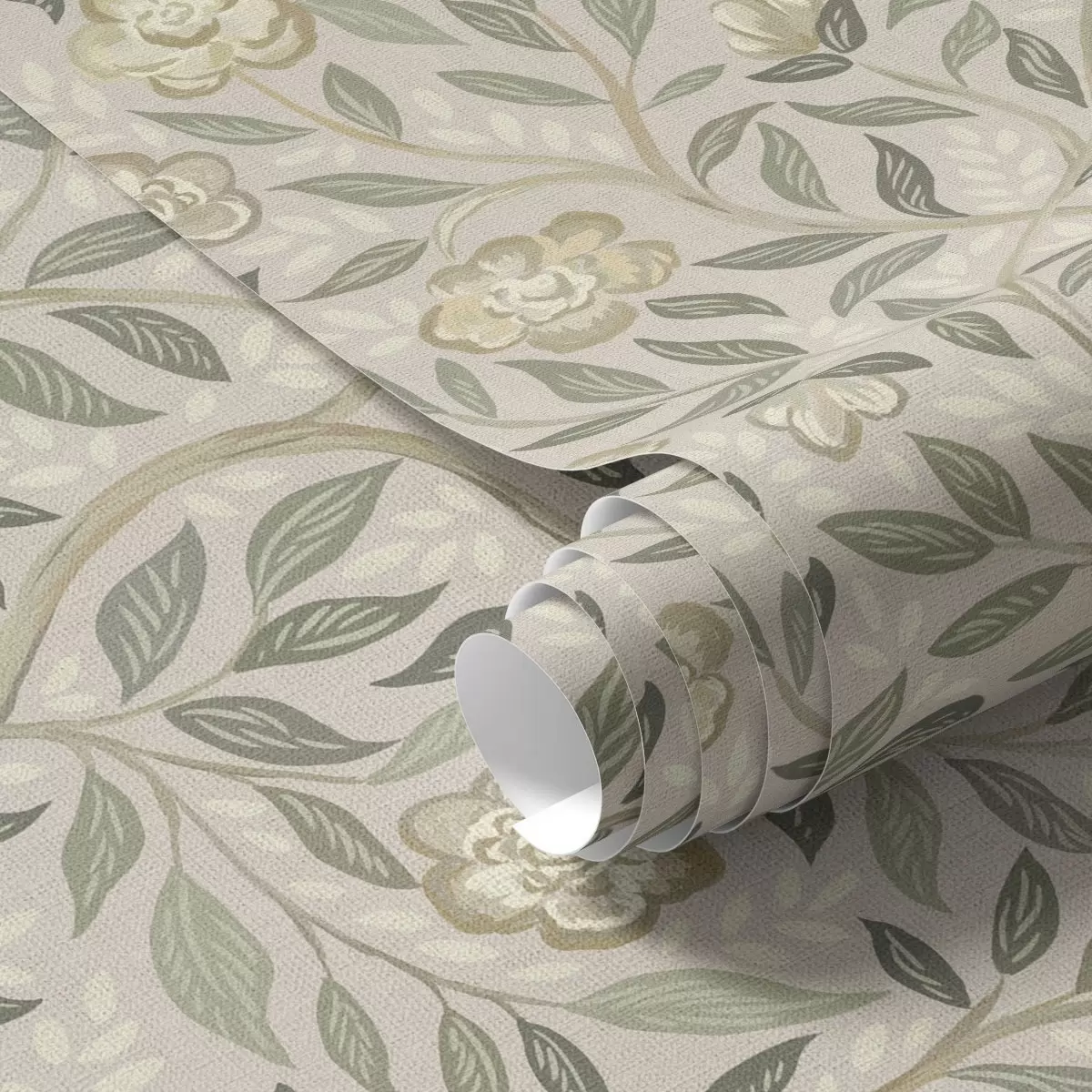 Papel tapiz Rosas crema y hojas de olivo sobre fondo rosa empolvado Nr. a00455