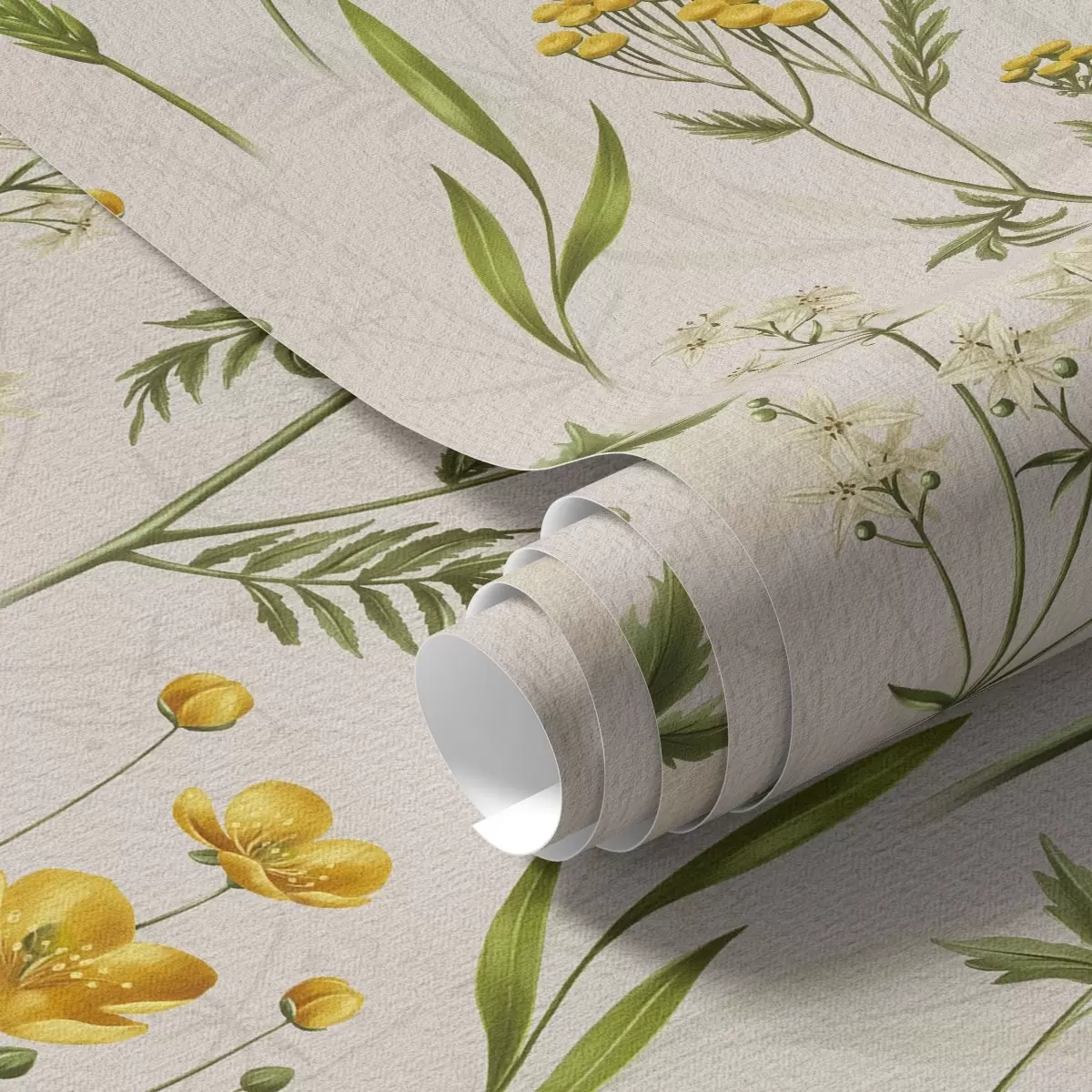 Papel tapiz Flores amarillas y verdes sobre fondo beige Nr. a00472v2
