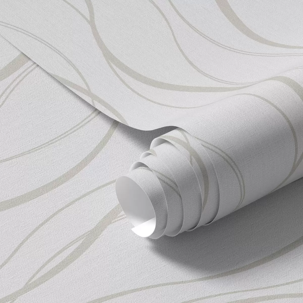 Papel tapiz Líneas abstractas onduladas de color beige sobre fondo blanco Nr. a00480