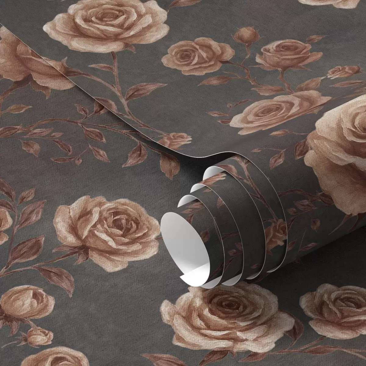 Papel tapiz Rosas vintage sobre fondo grafito, paleta terracota Nr. a00497v1