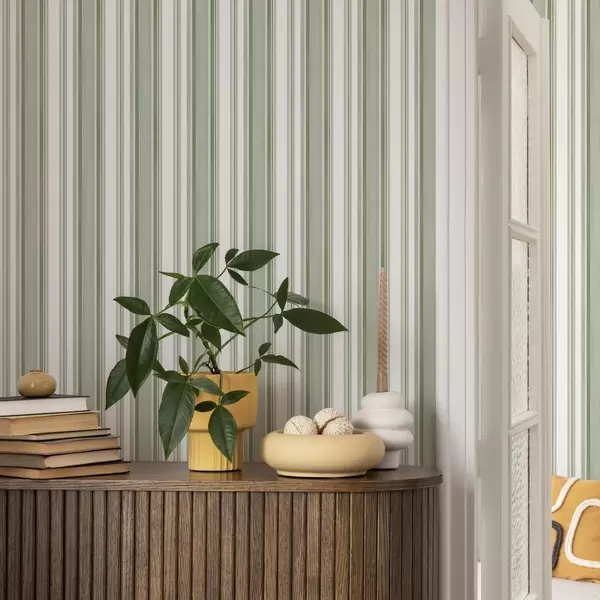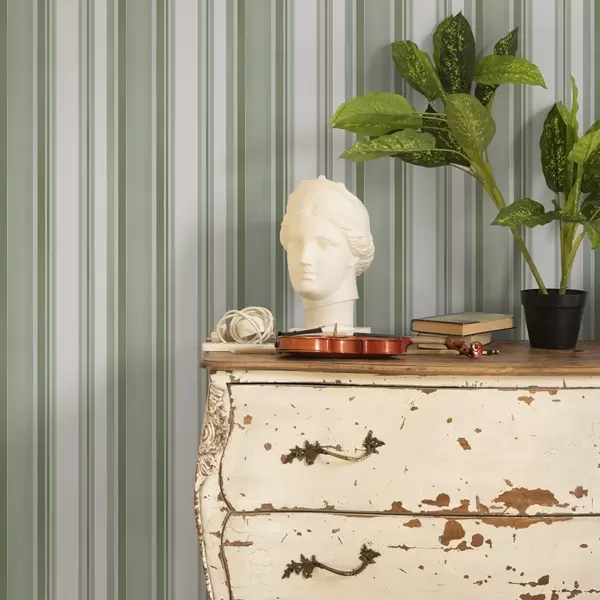 Papel tapiz Rayas verdes con intervalos blancos y líneas finas Nr. a00526