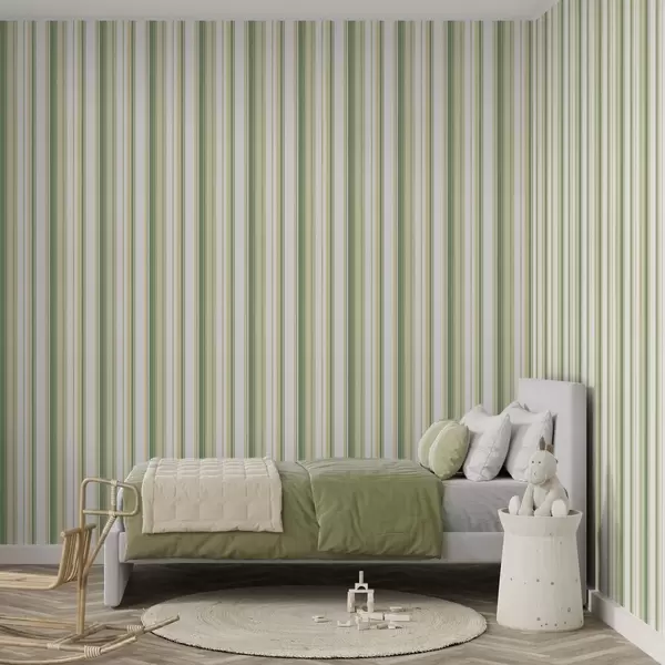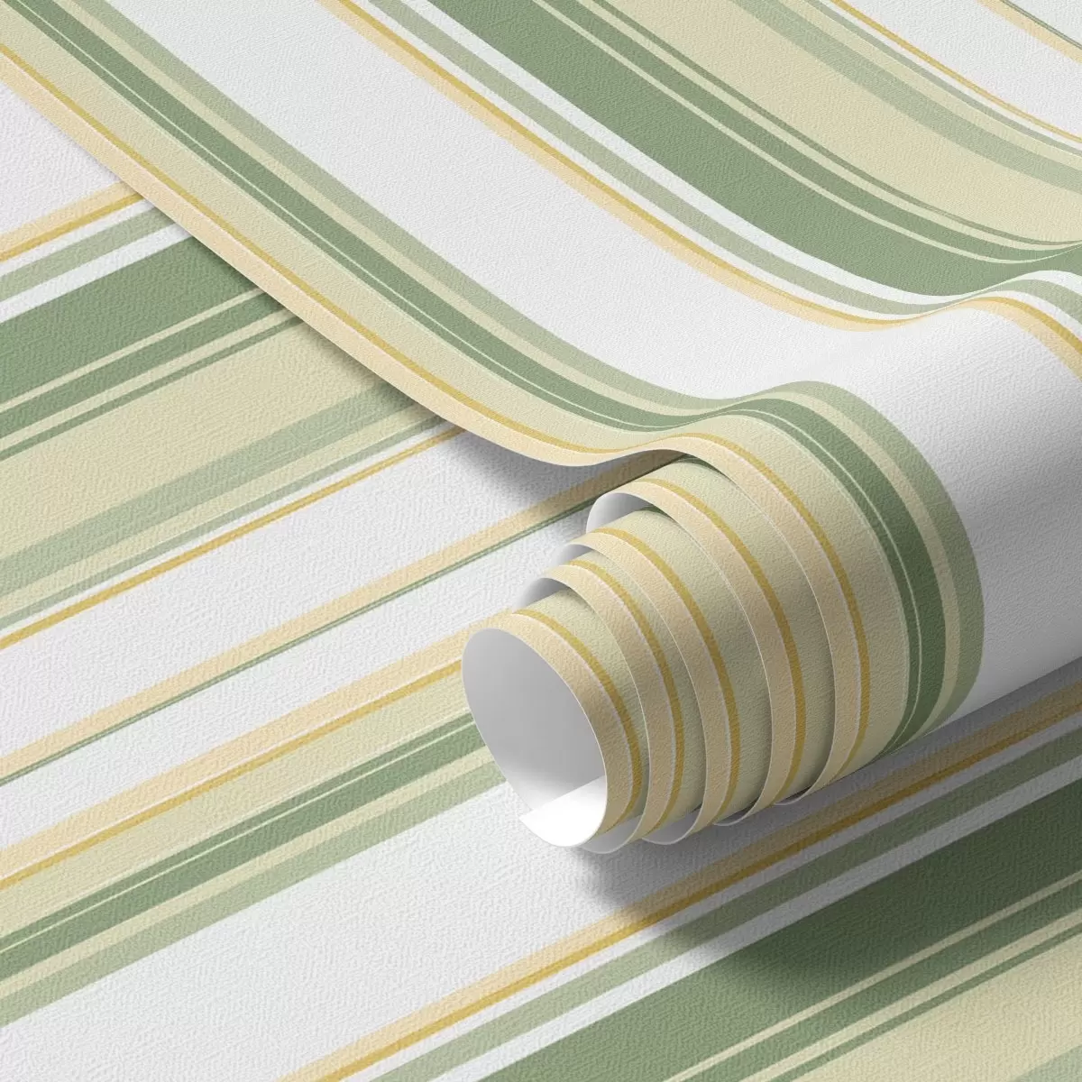 Papel tapiz Rayas verdes y beige con acentos amarillos Nr. a00531