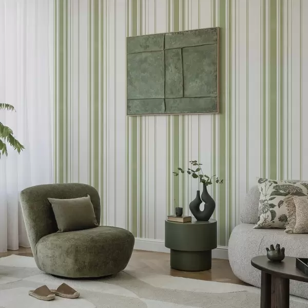 Papel tapiz Rayas verticales verdes de anchura variable Nr. a00565