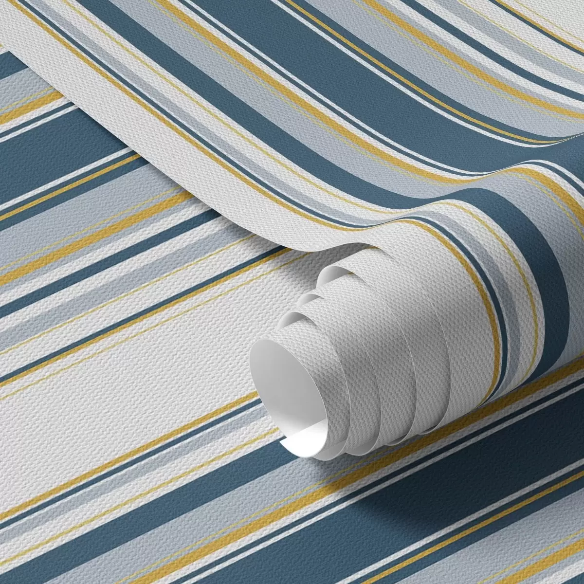 Papel tapiz Rayas azules y amarillas en contraste sobre fondo blanco Nr. a00566