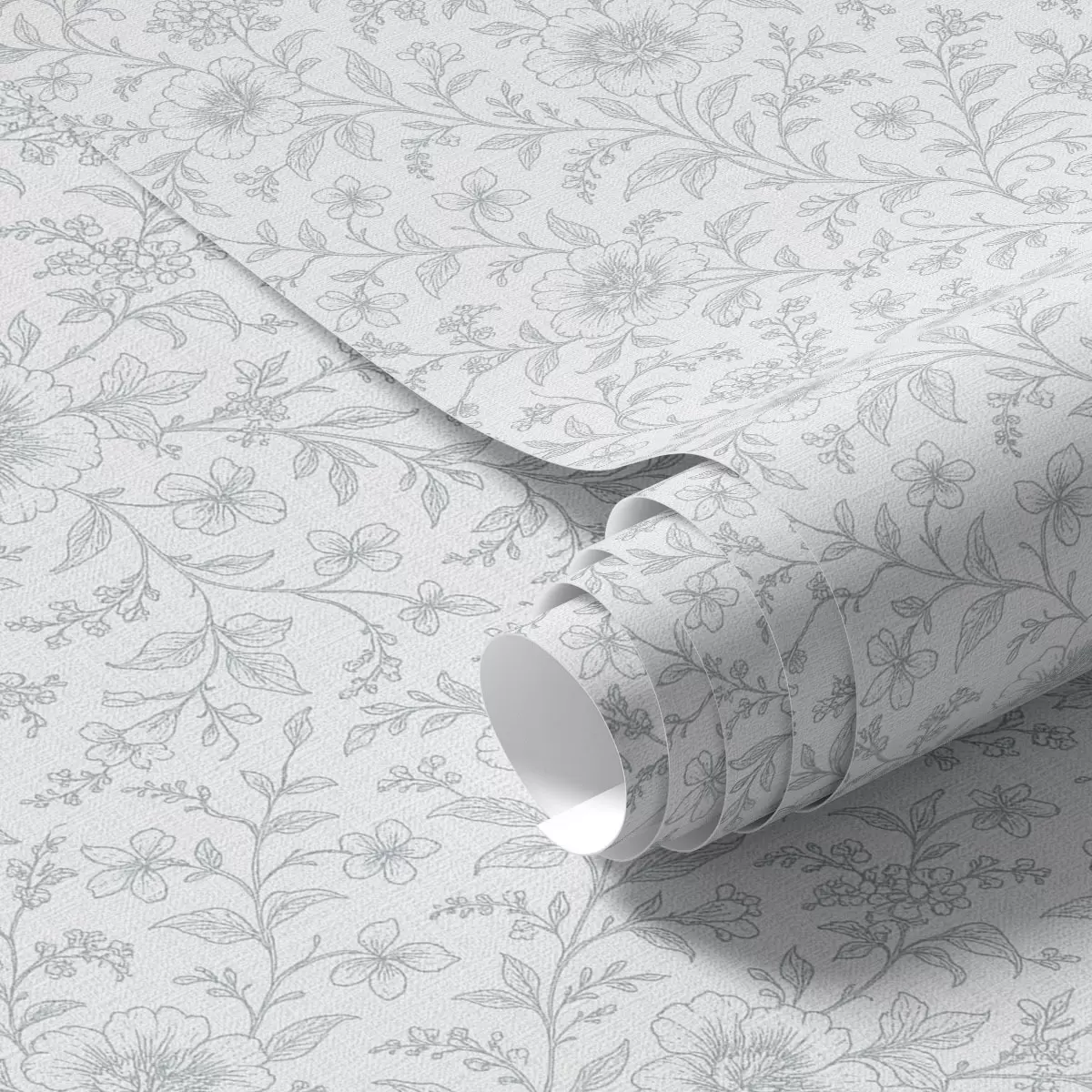 Papel tapiz Delicadas flores dibujadas con trazos finos sobre un fondo blanco roto Nr. a00576
