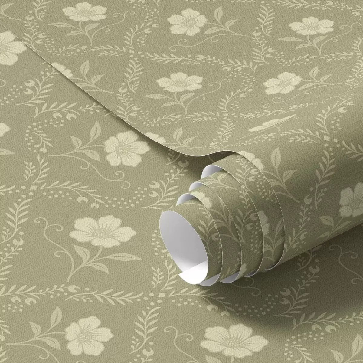 Papel pintado Enrejado de olivo con flores color crema, adorno retro a00585