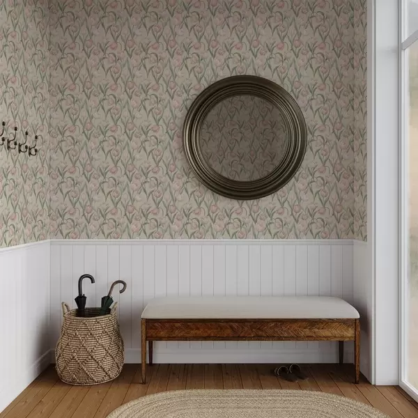 Papel pintado Tulipanes rosa pálido sobre un suave fondo beige a00589