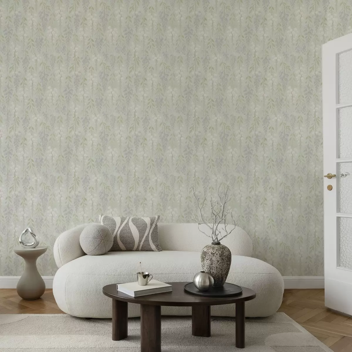Papel tapiz Glicinia lavanda sobre fondo verde menta Nr. a00593
