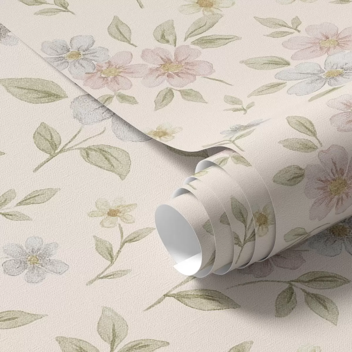 Papel tapiz Flores de campo en tonos pastel sobre fondo crema Nr. a00596