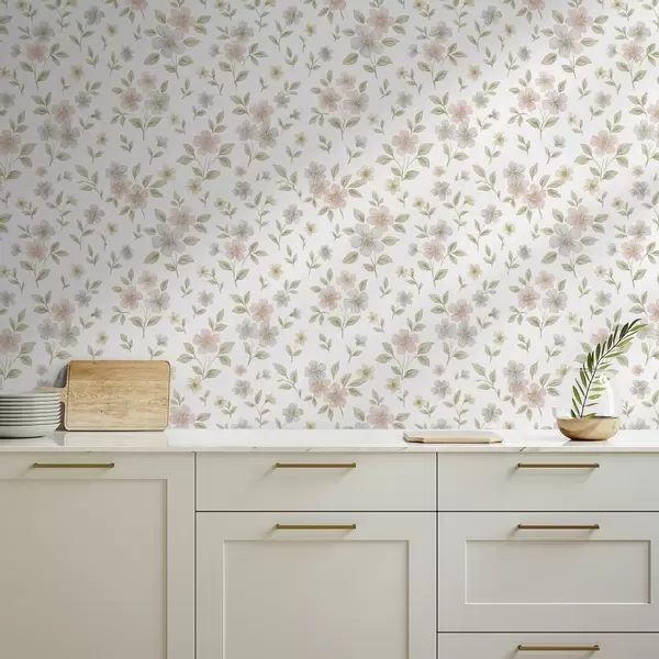 Papel pintado Pequeñas flores acuareladas en tonos pastel sobre fondo blanco a00596v1
