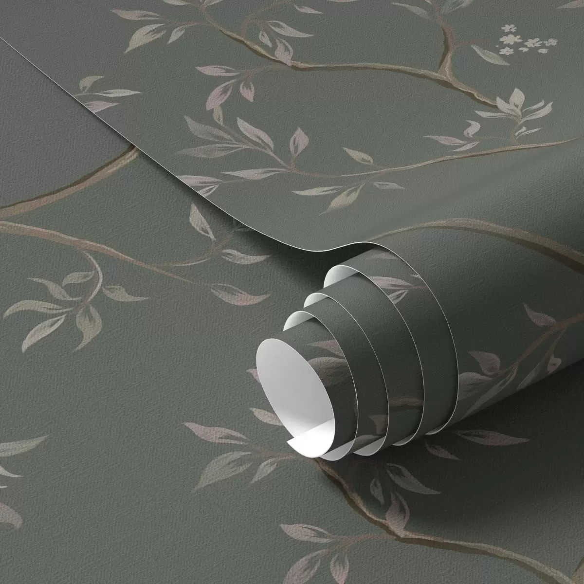 Papel tapiz Delicadas ramas frondosas sobre un fondo verde oscuro Nr. a00597