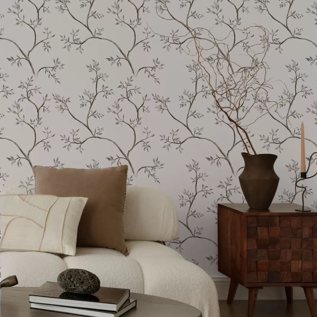 Papel tapiz Delicadas ramas frondosas sobre un cálido fondo color crema Nr. a00597v1