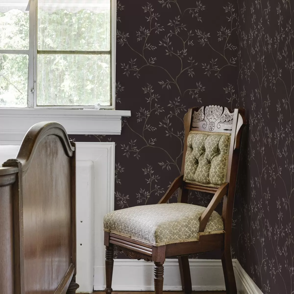 Papel tapiz Delicadas ramas frondosas sobre un rico fondo ciruela Nr. a00597v2