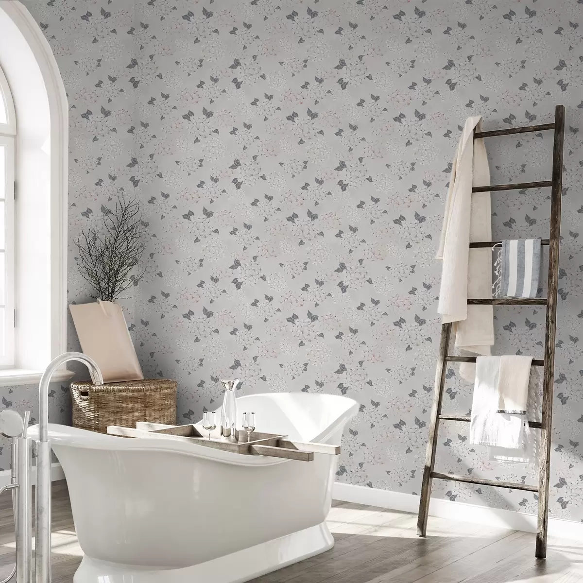 Papel tapiz Flores aireadas sobre un fondo claro, suaves tonos rosa grisáceos Nr. a00600