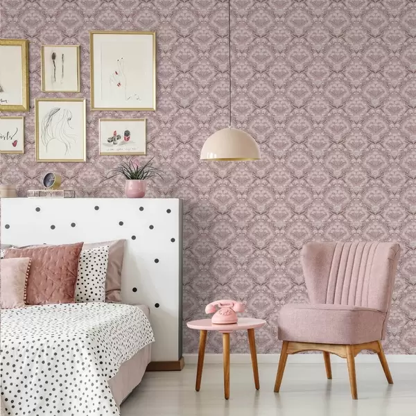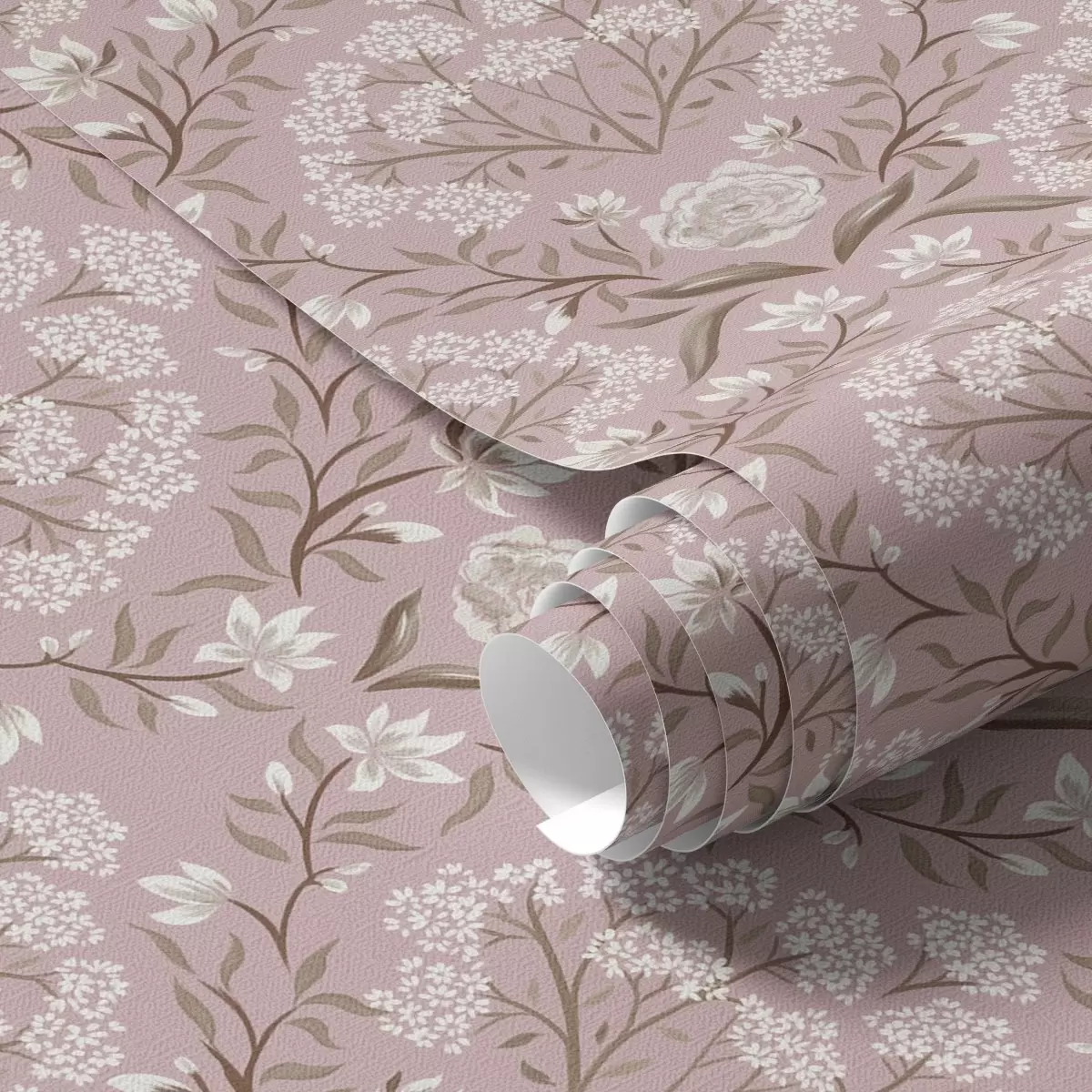Papel pintado Damasco rosa: peonías, campanillas de invierno y racimos de encaje a00603