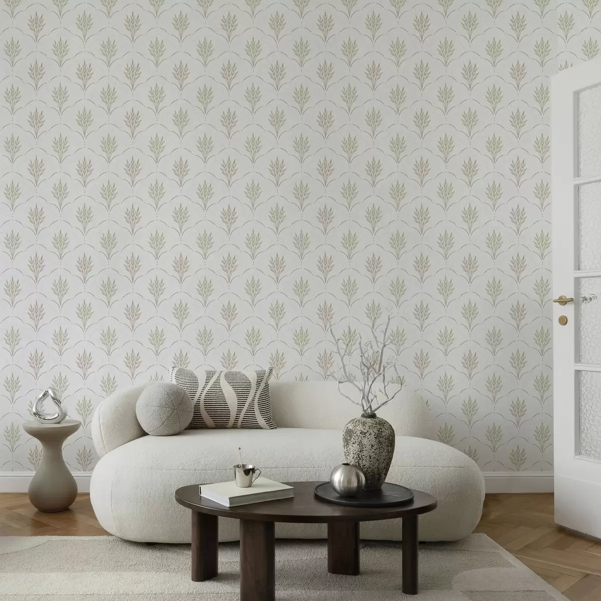 Papel tapiz Trigo en un adorno arqueado, suaves tonos pastel sobre fondo blanco Nr. a00607v1