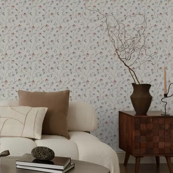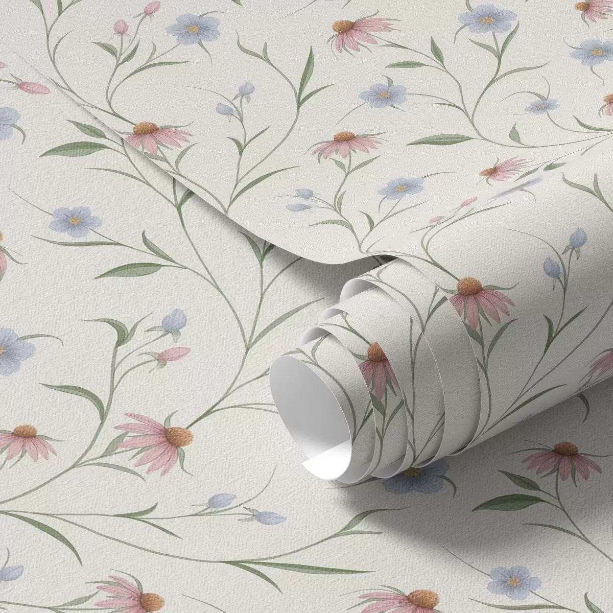 Papel tapiz Margaritas silvestres y equinácea sobre fondo crema, luminosidad Nr. a00614