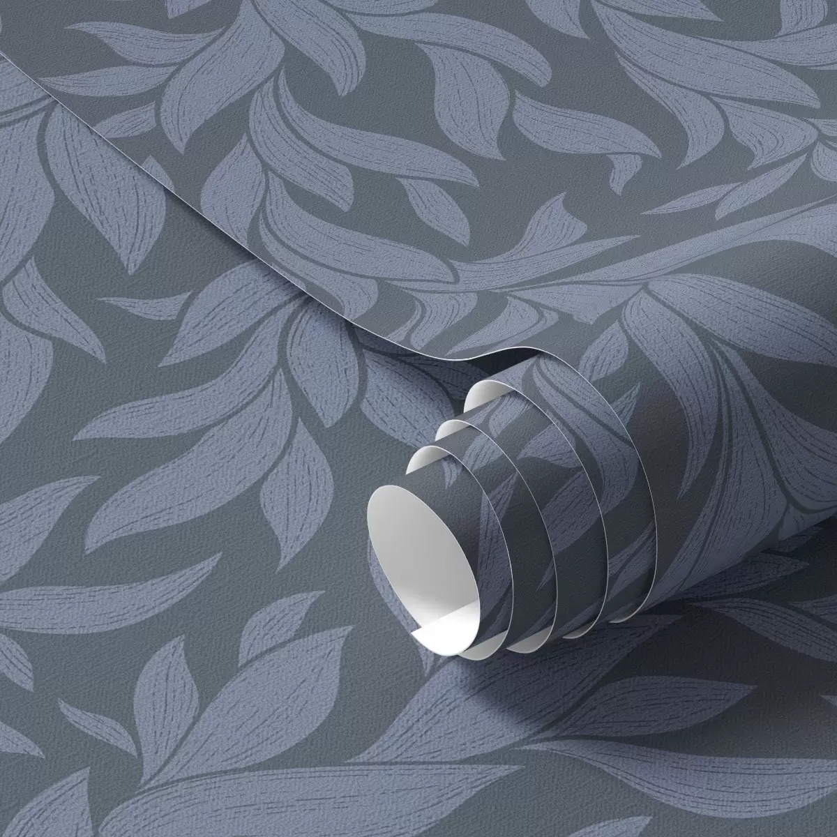 Papel tapiz Fondo azul grafito y hojas azules, trazo texturizado Nr. a00616v2