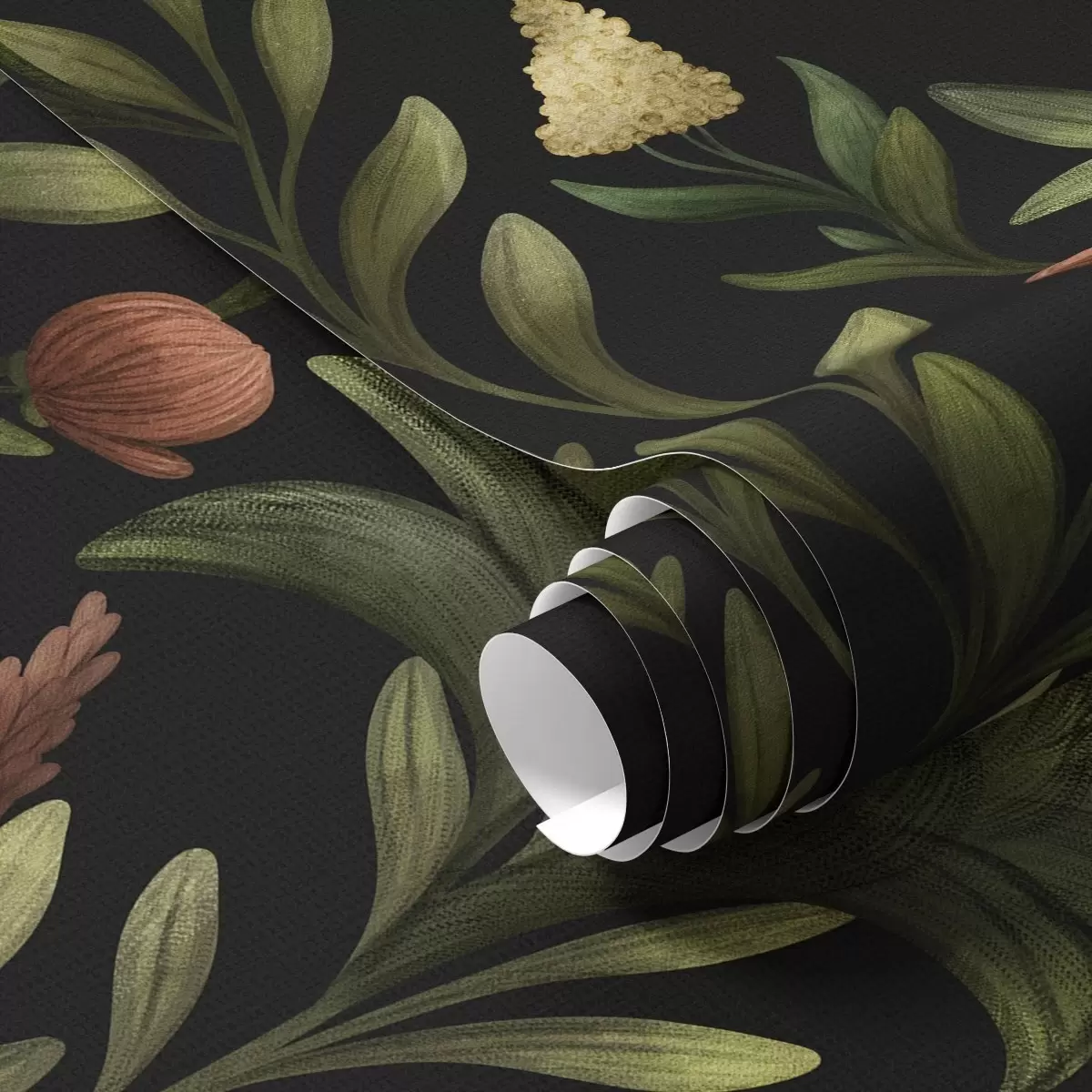 Papel tapiz Hierbas altas y flores sobre fondo negro, estampado detallado Nr. a00620