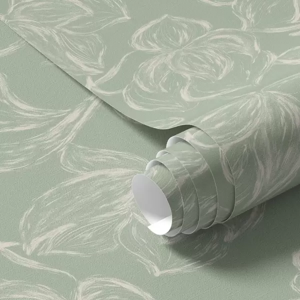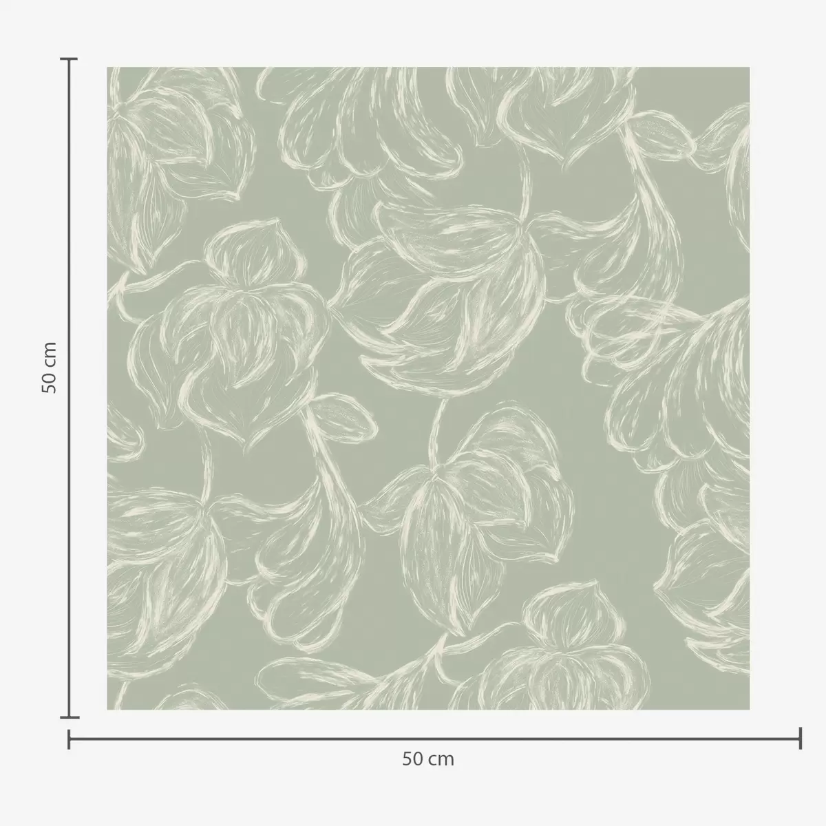 Papel tapiz Flores grandes lineales, trazos de tiza sobre fondo salvia Nr. a00625v1