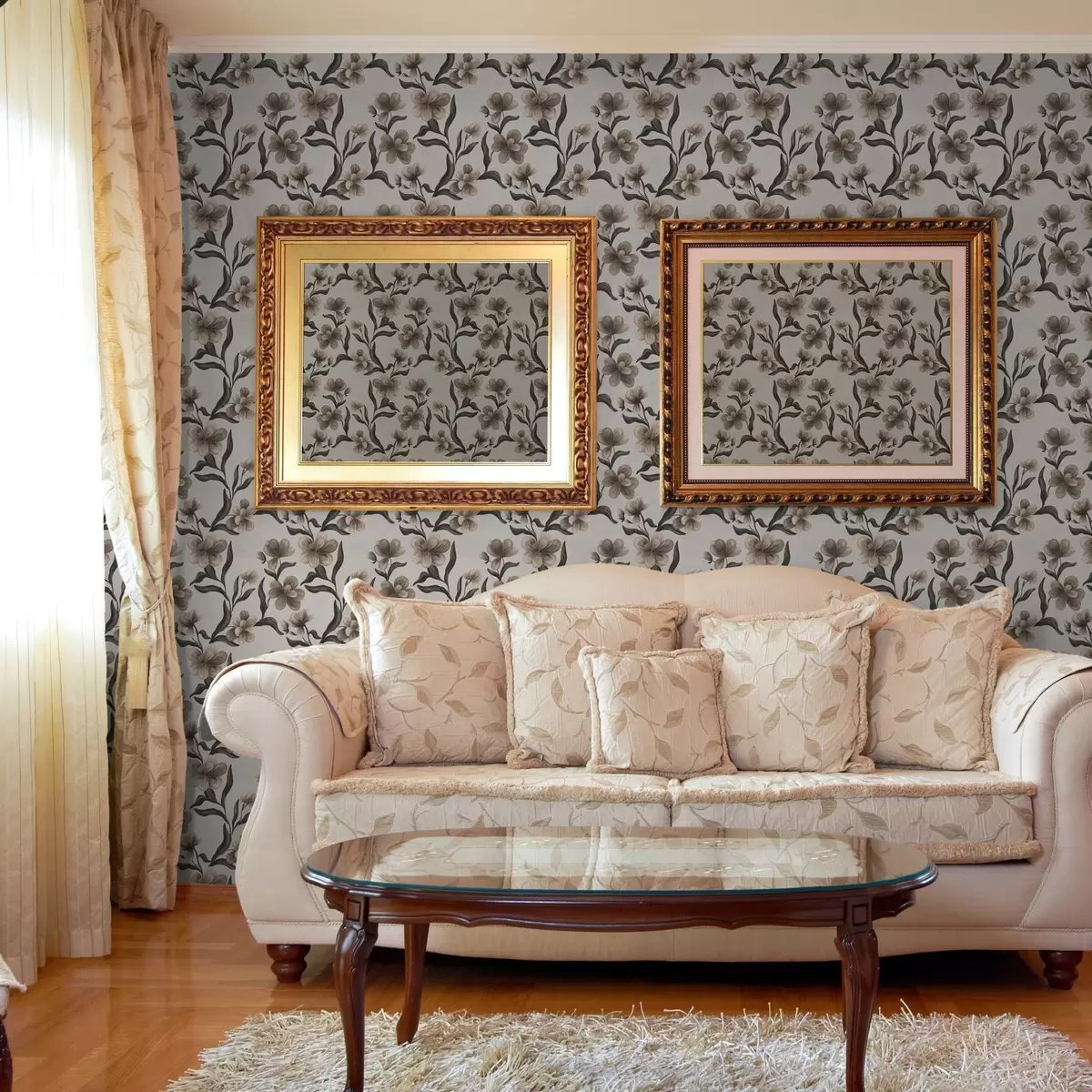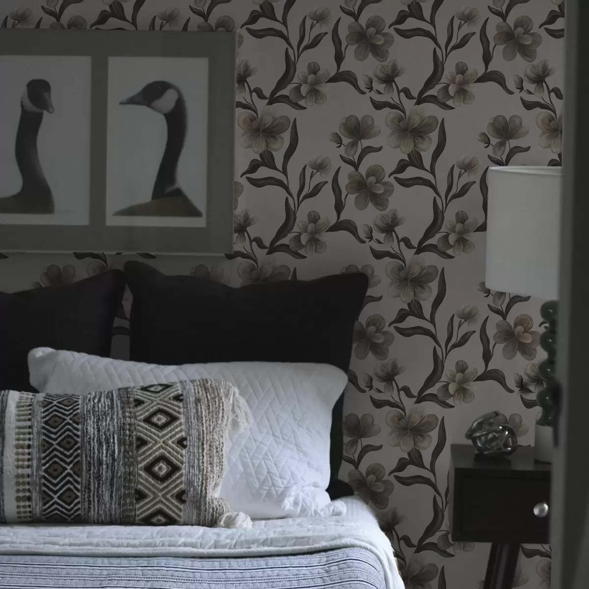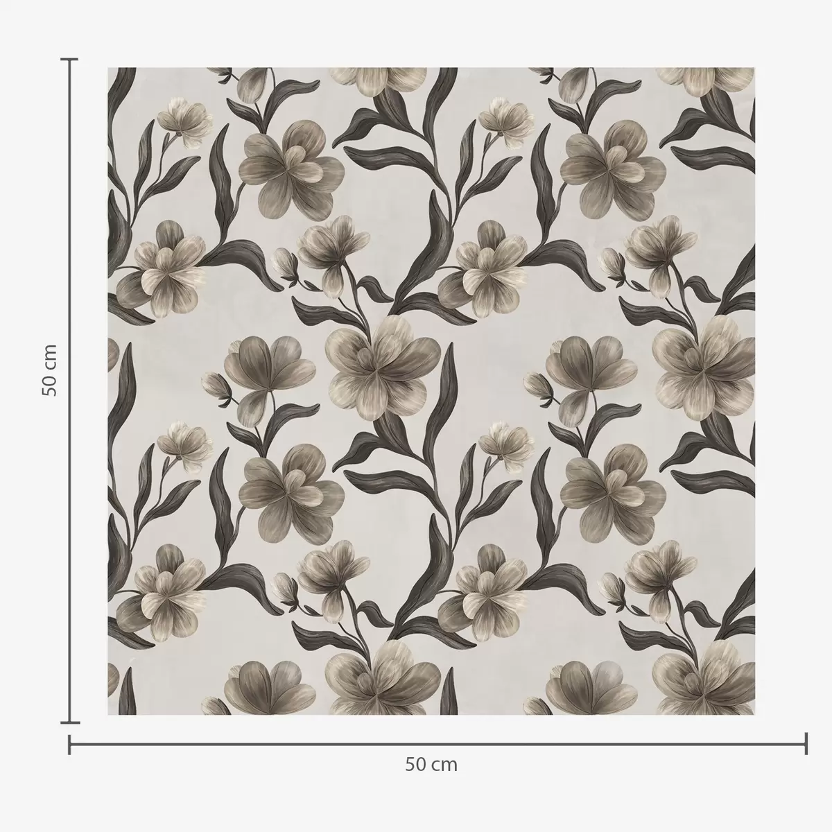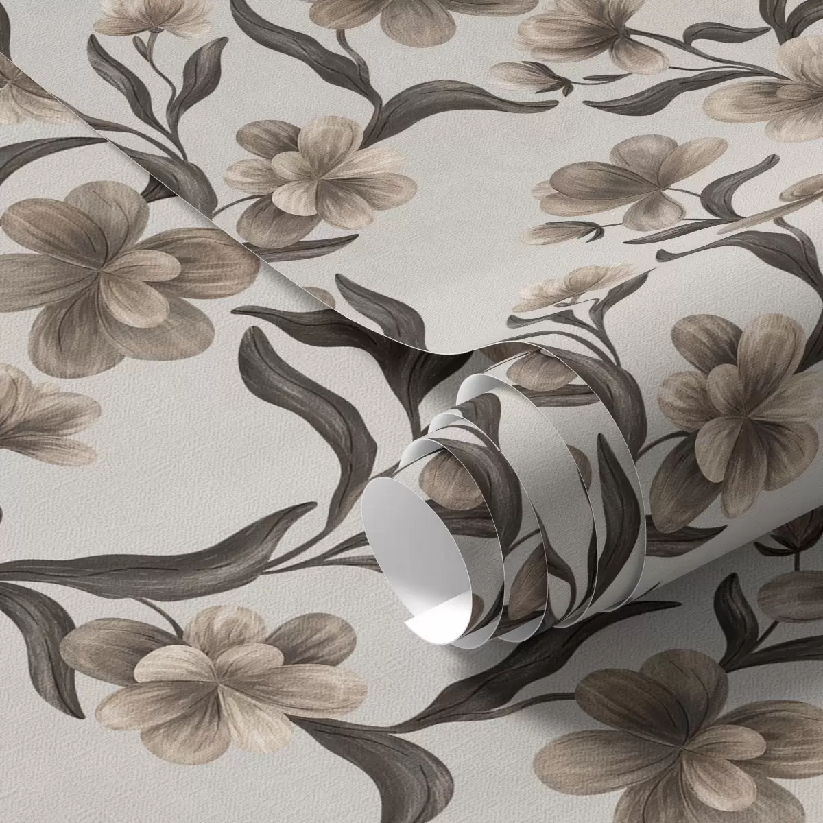 Papel tapiz Flores beige y ramas oscuras sobre fondo gris claro Nr. a00626v1