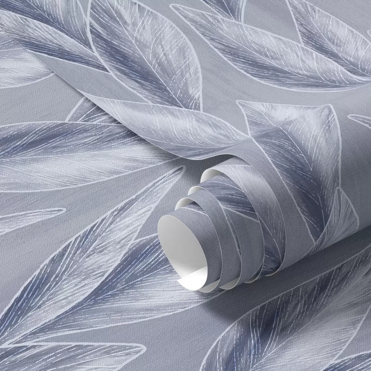 Papel pintado Hojas azul plateadas sobre fondo gris azulado, patrón gráfico a00627