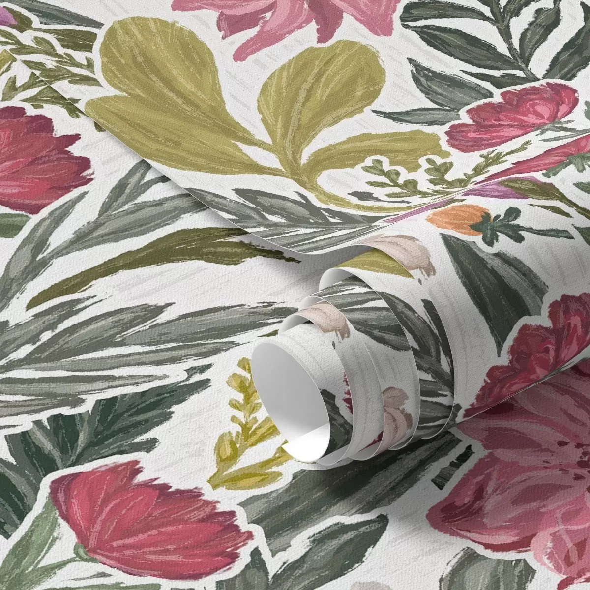 Papel tapiz Exuberantes flores rosas y crema sobre fondo blanco, textura impasto Nr. a00629v1