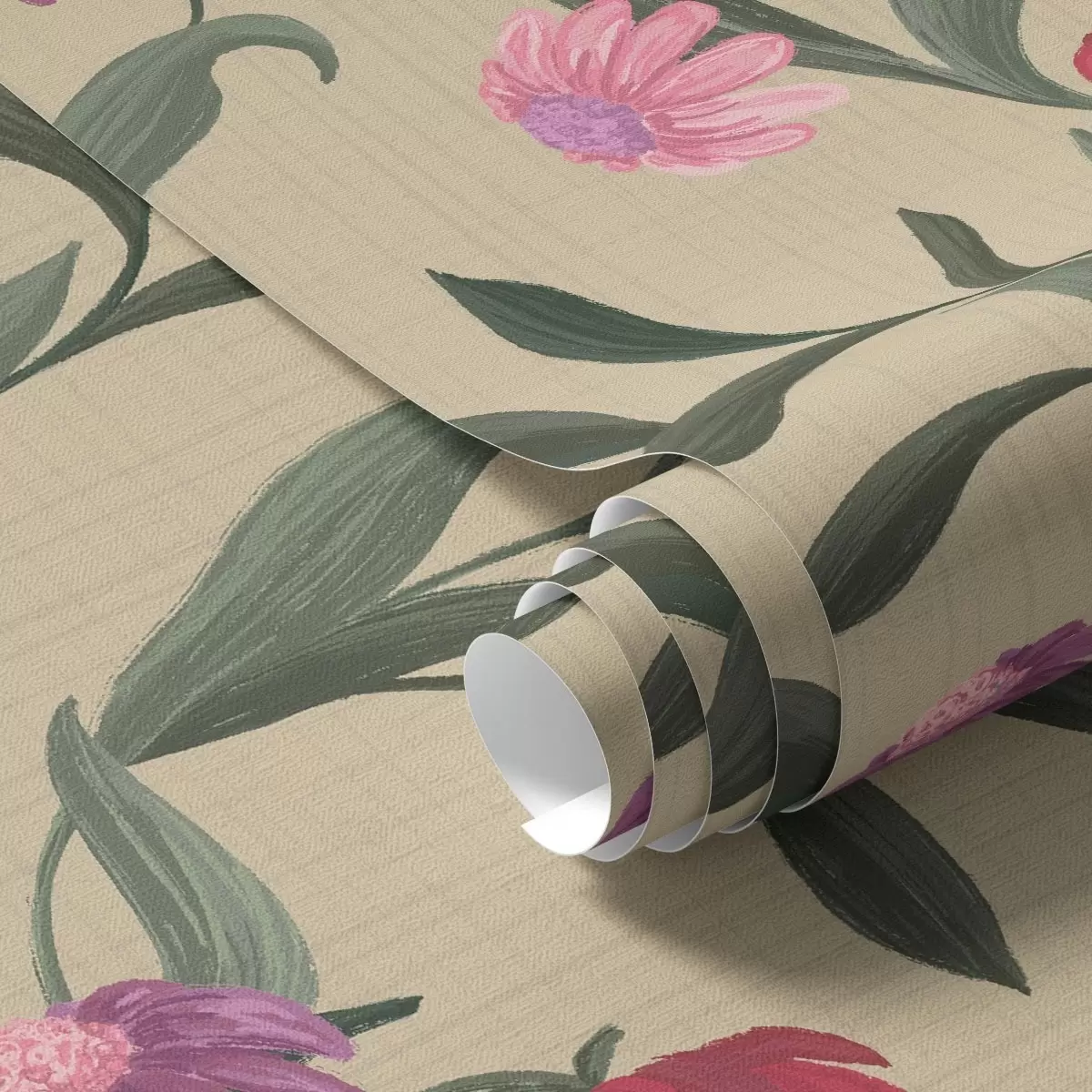 Papel pintado Flores de color rosa rojizo sobre fondo beige, textura dibujada a mano a00631