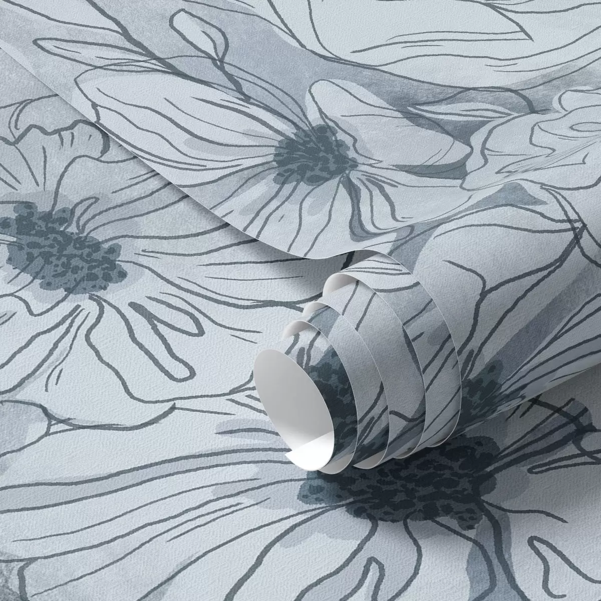 Papel pintado Flores lineales en una fresca paleta de colores gris azulados a00636v2