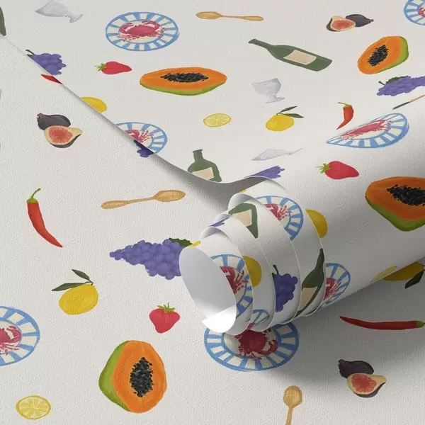 Papel tapiz Fruta, vino y especias dispuestos sobre un fondo claro Nr. a00639