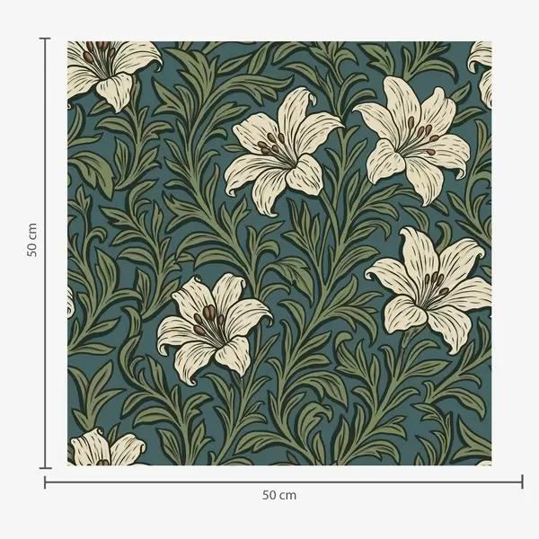 Papel tapiz Lirios crema entre una densa vegetación sobre un fondo turquesa Nr. a00645