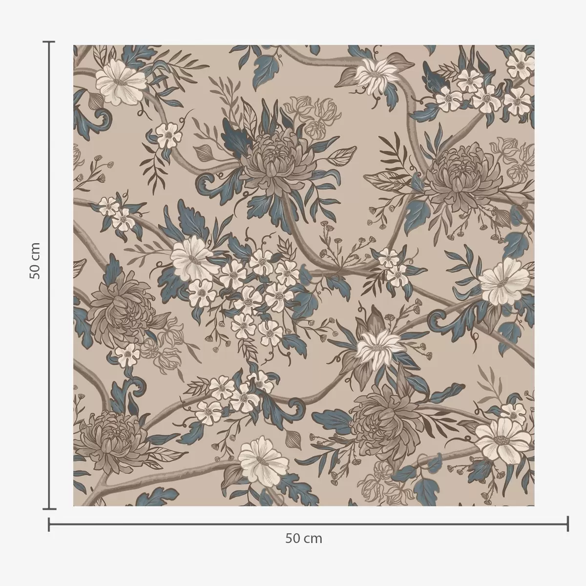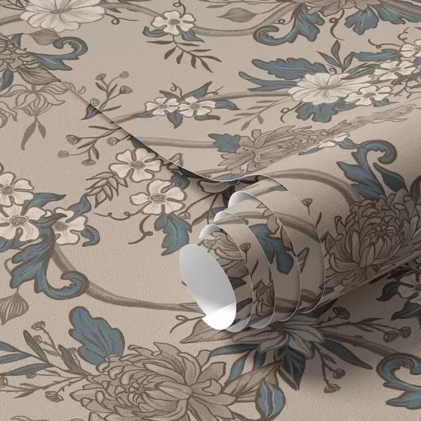 Papel tapiz Flores grandes con hojas estampadas sobre un fondo beige cálido Nr. a00649