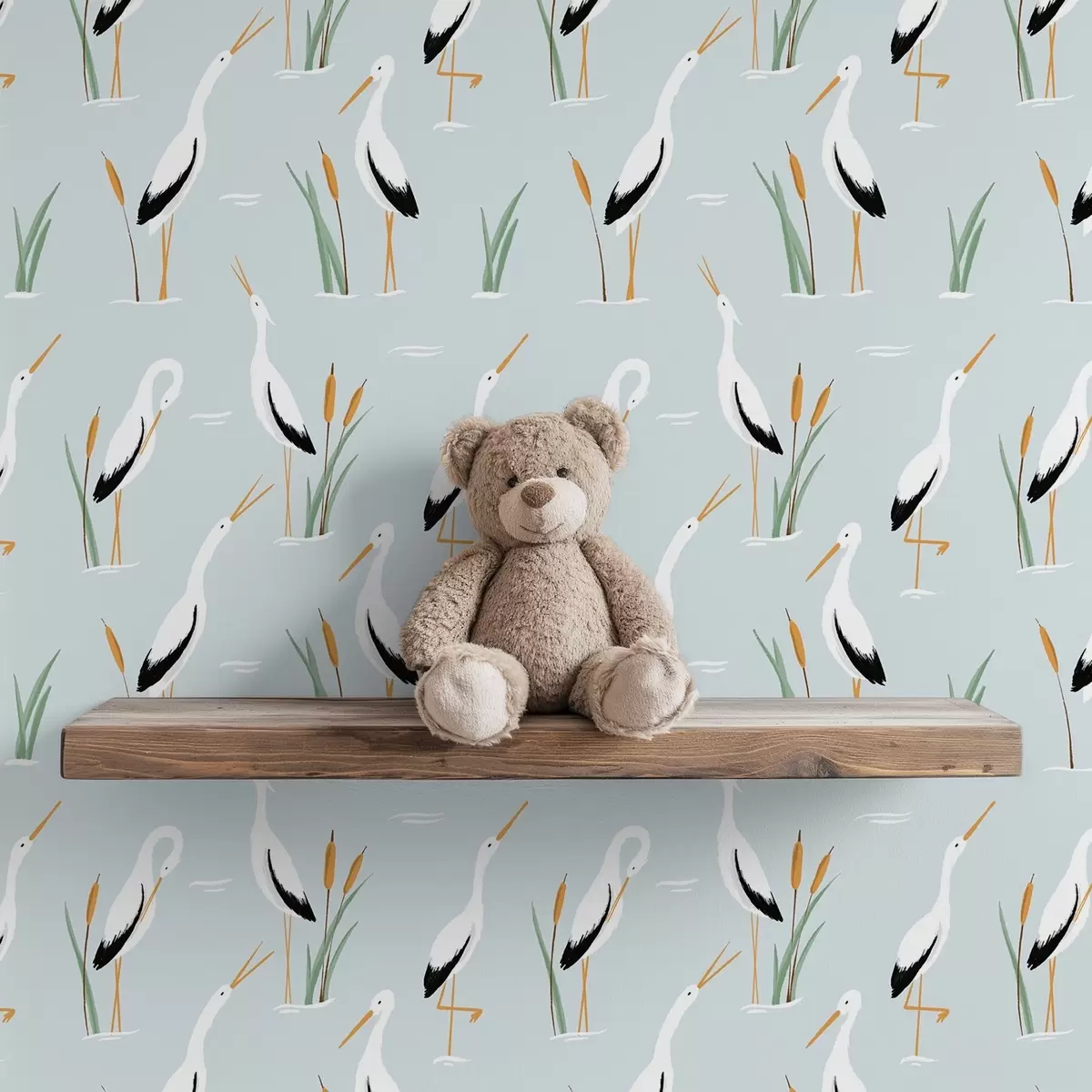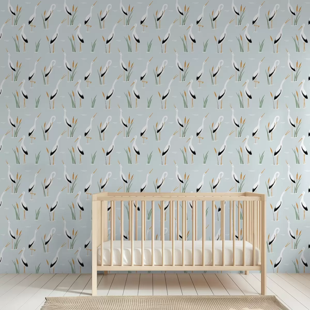 Papel tapiz Garzas entre juncos sobre un suave fondo azul Nr. a00650v1