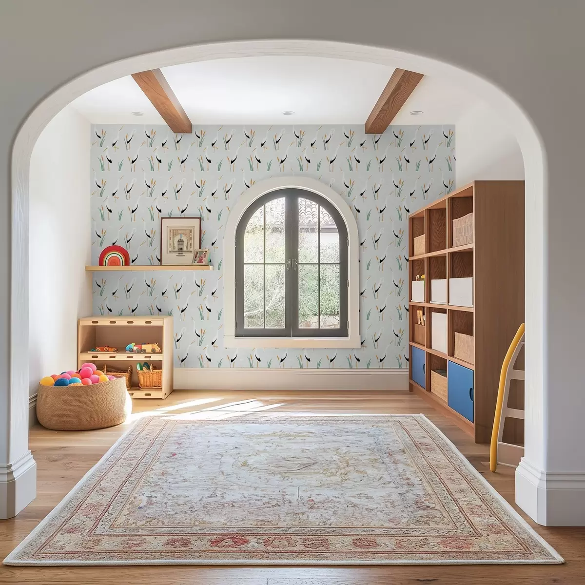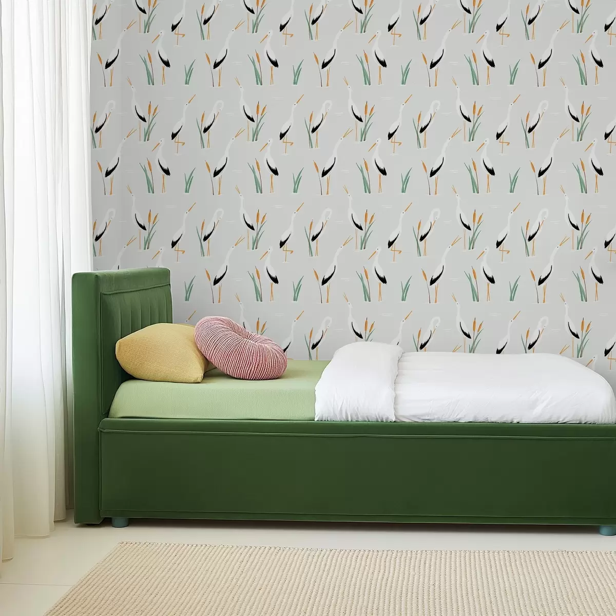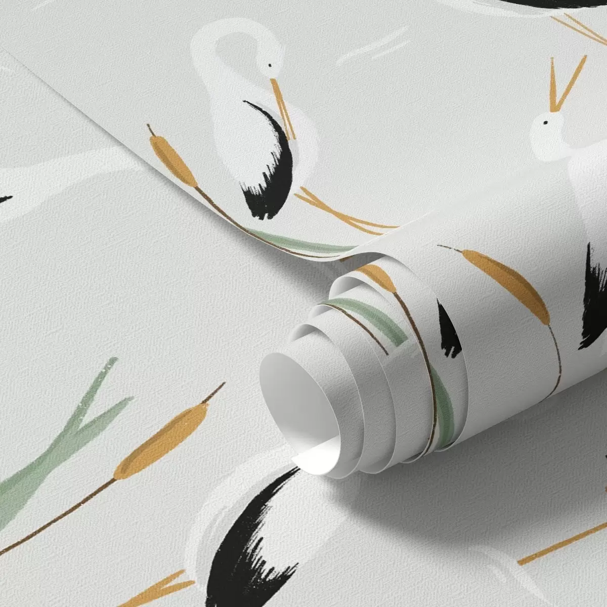 Papel tapiz Garzas entre juncos sobre un fondo claro Nr. a00650v2