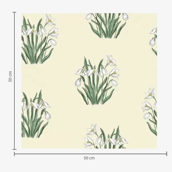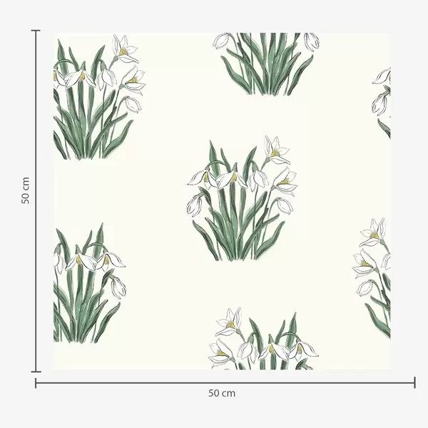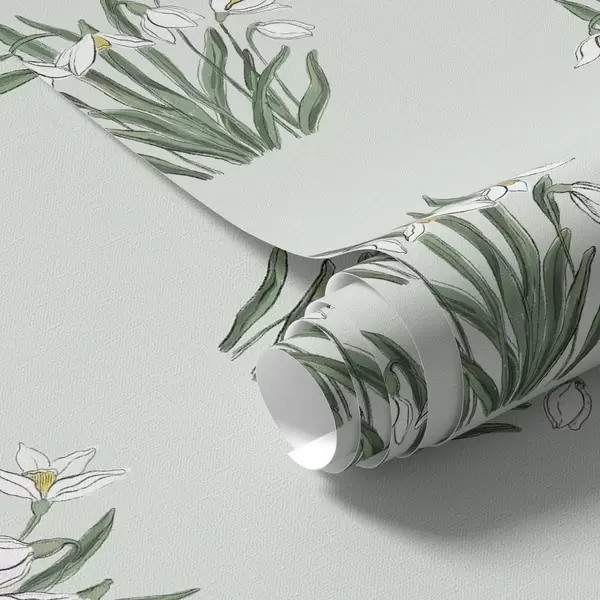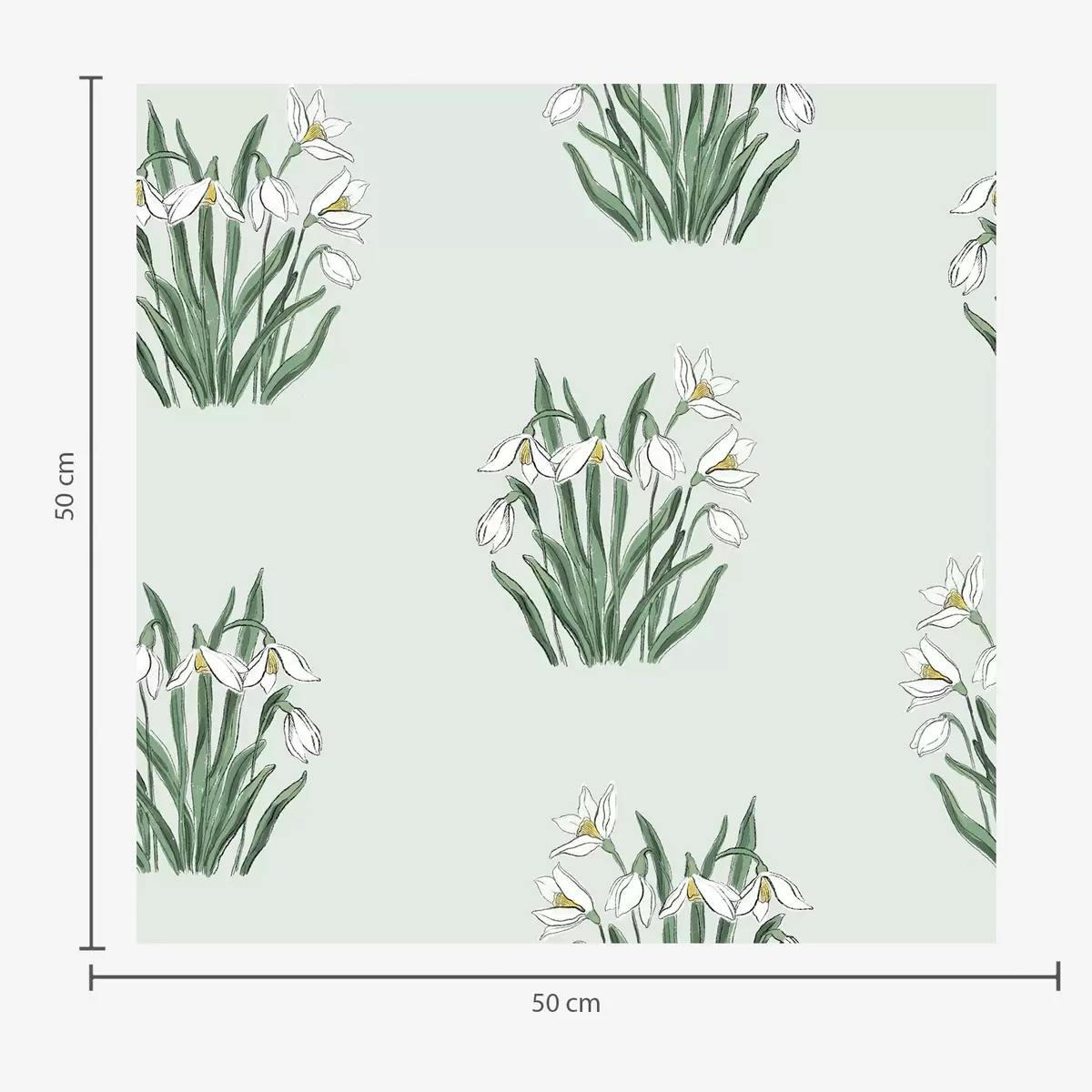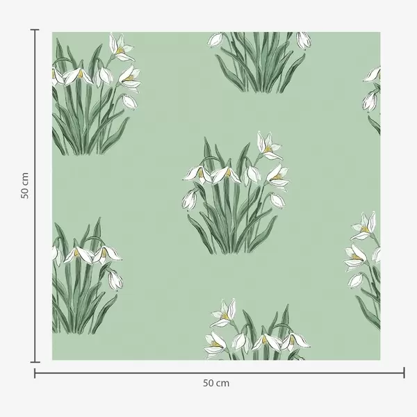 Papel tapiz Campanillas de invierno con hojas verdes sobre fondo verde pastel Nr. a00651