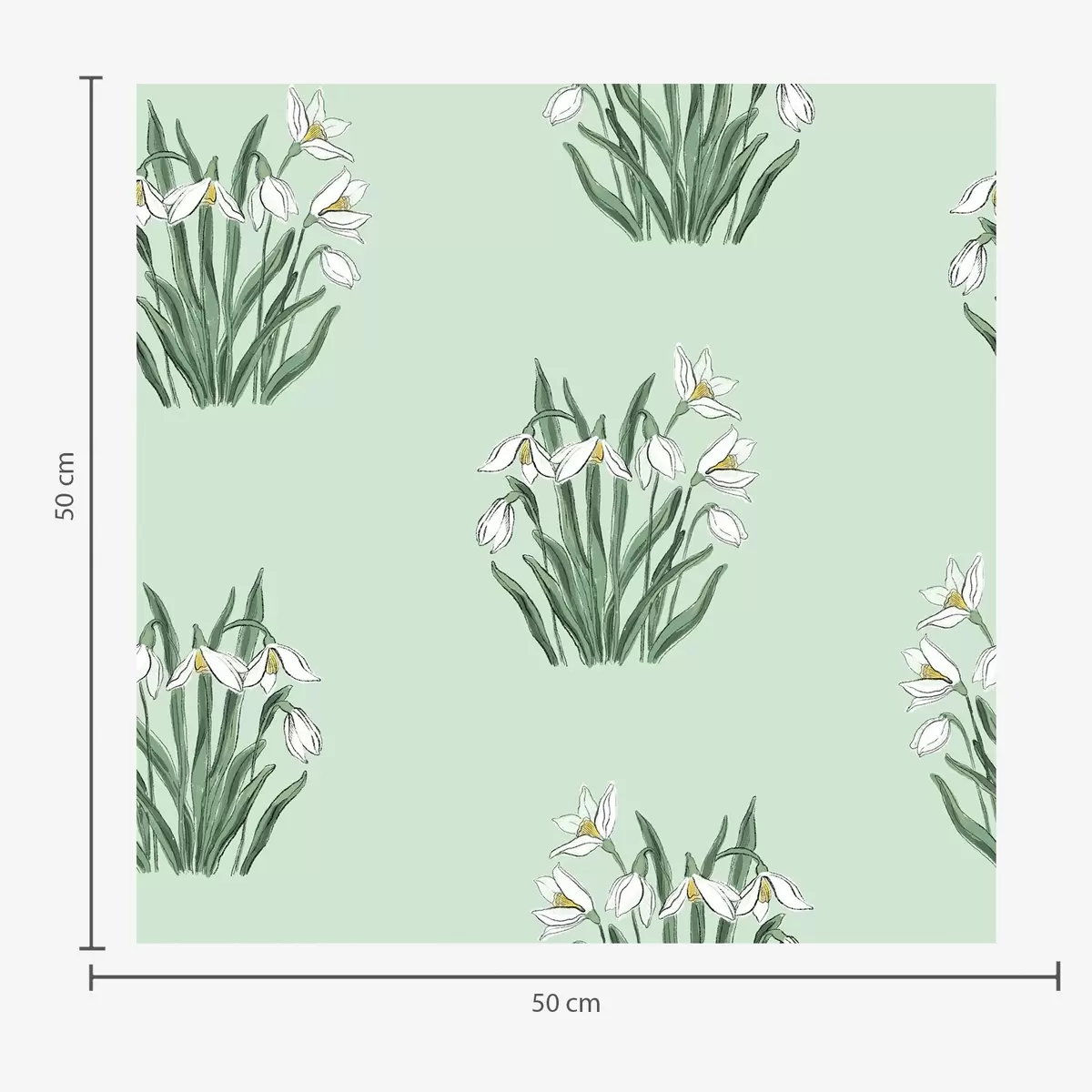 Papel tapiz Campanillas de invierno con hojas verdes sobre un fondo amarillo cálido Nr. a00651v3