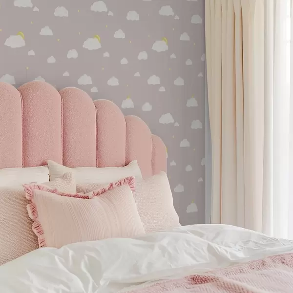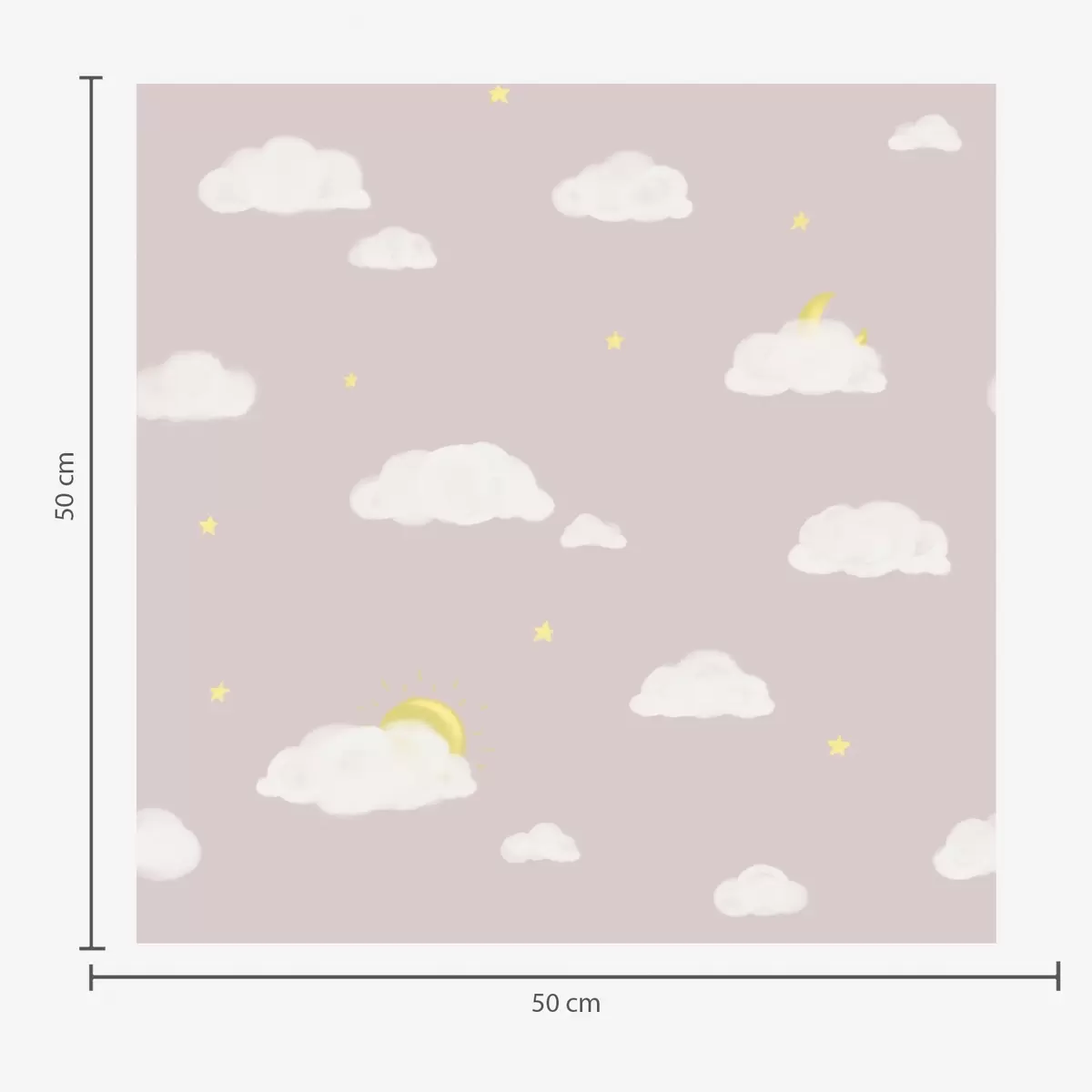 Papel tapiz Nubes suaves, estrellas y sol sobre un fondo gris rosáceo Nr. a00652v2
