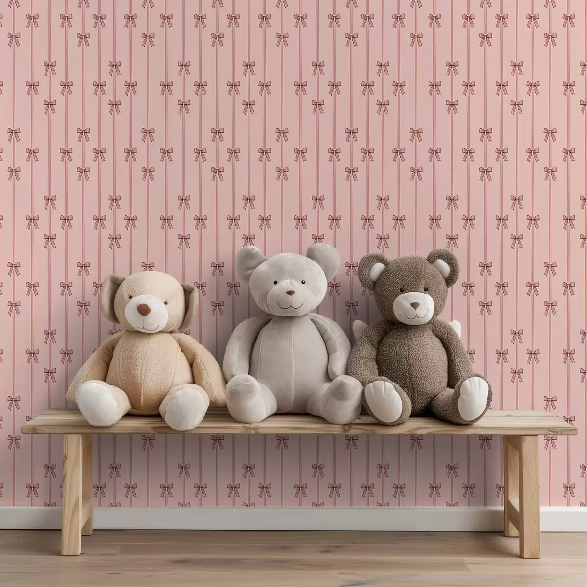 Papel tapiz Cintas verticales con lazos, fondo rosa coral Nr. a00653v3