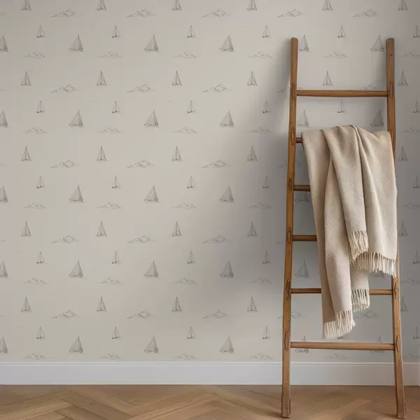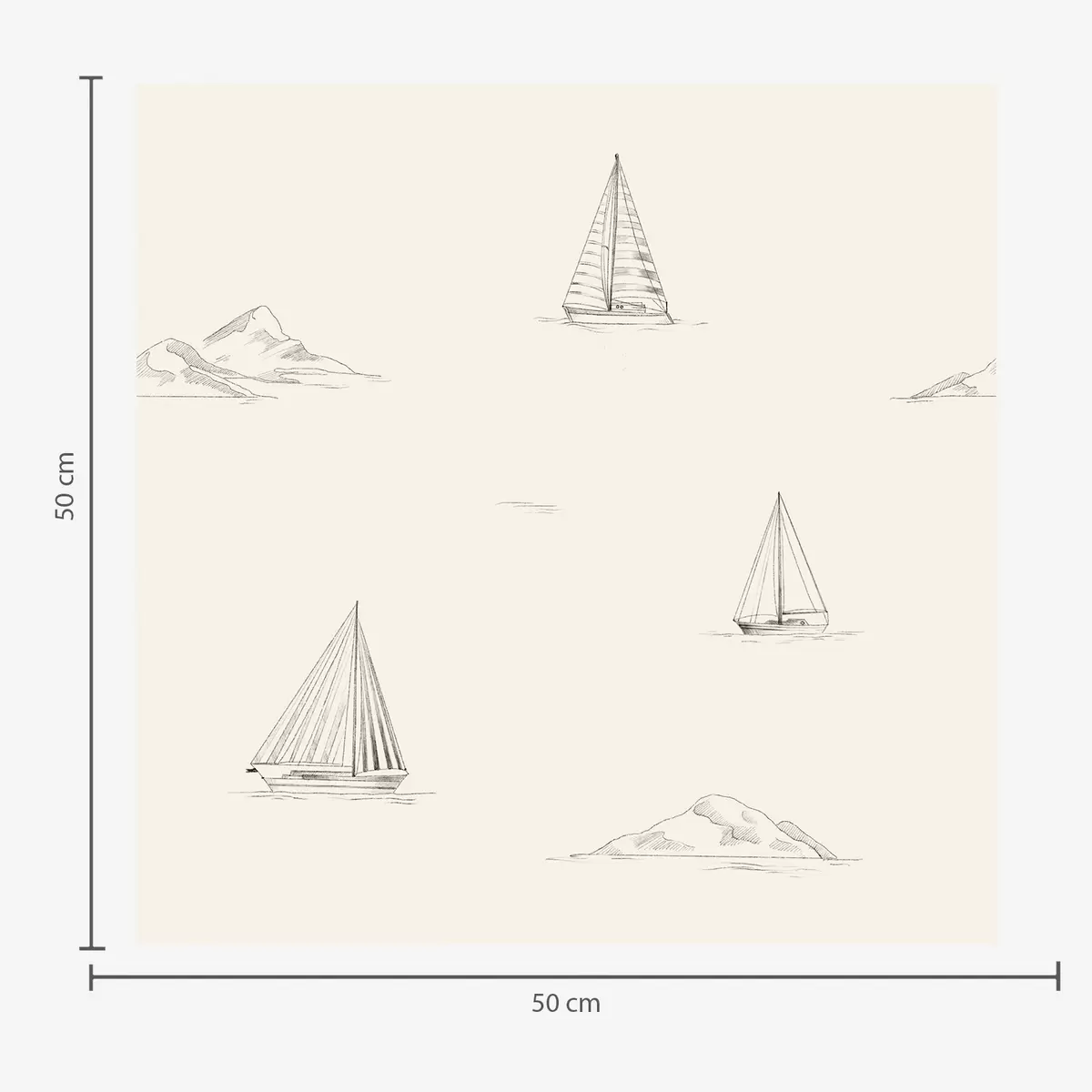 Papel tapiz Bocetos de yates e islas, fondo crema cálido. Nr. a00654v1