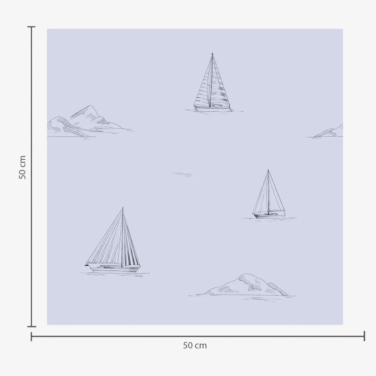 Papel tapiz Bocetos de yates e islas, fondo azul Nr. a00654v3