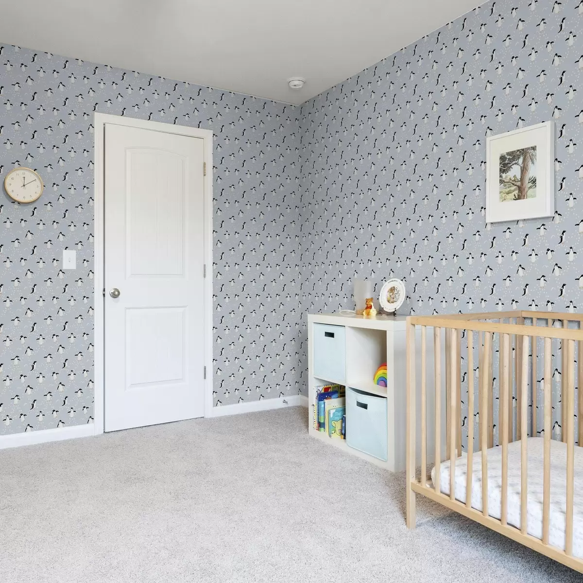 Papel tapiz Pingüinos sobre fondo azul claro, ritmo de huellas Nr. a00655v2