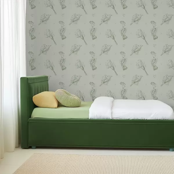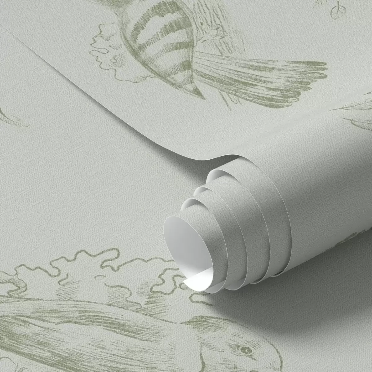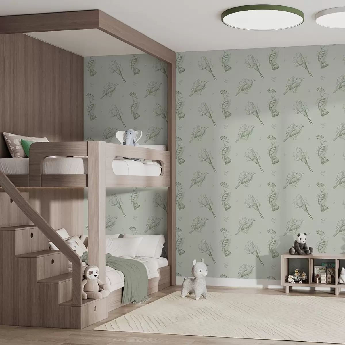 Papel tapiz Toile de pájaros: bocetos de pájaros sobre fondo gris verdoso Nr. a00656v1