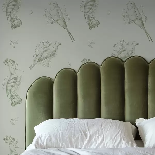 Papel tapiz Toile de pájaros: bocetos de pájaros sobre fondo gris verdoso Nr. a00656v1