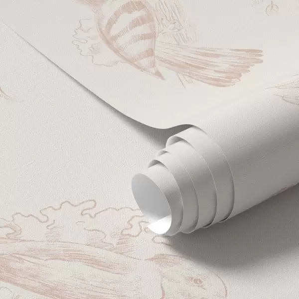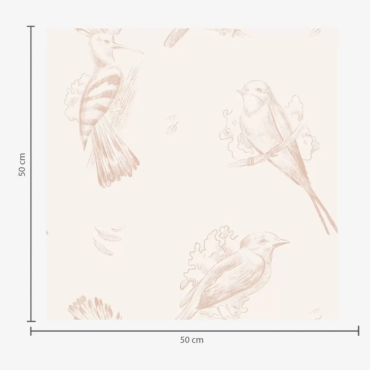 Papel tapiz Toile de pájaros: bocetos de pájaros sobre fondo color melocotón-crema. Nr. a00656v2