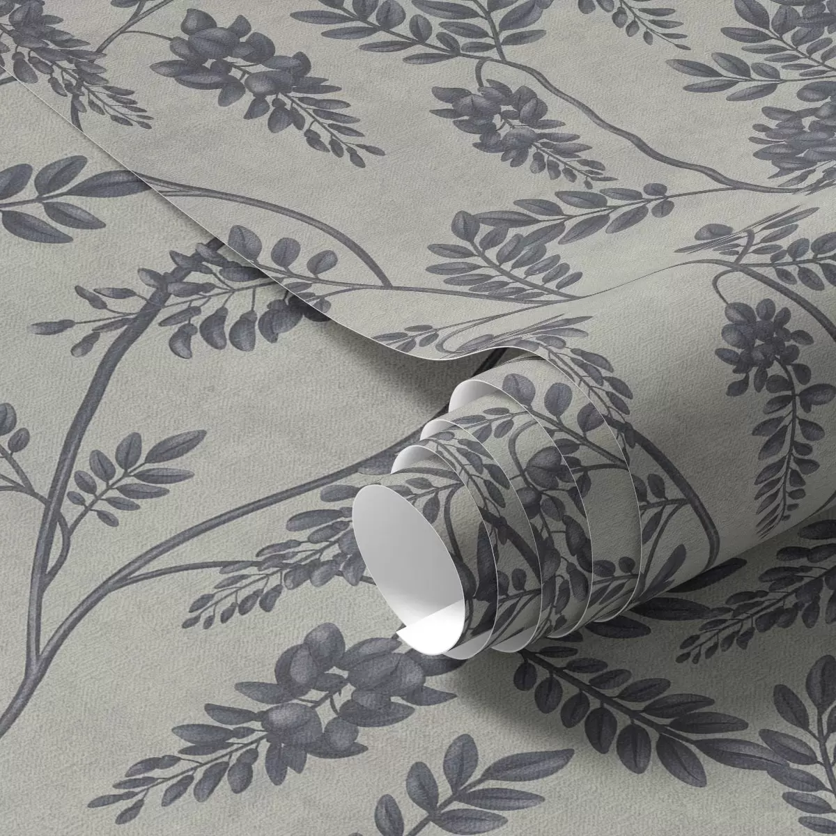 Papel tapiz Ramas con flores oscuras sobre un fondo gris-beige Nr. a00672
