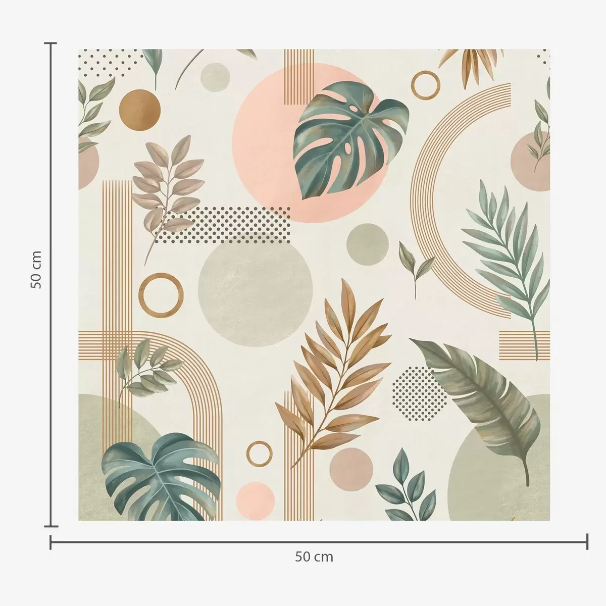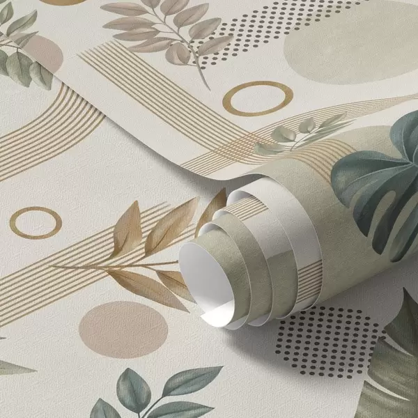 Papel tapiz Hojas y formas geométricas en tonos cálidos y tranquilos Nr. a00677