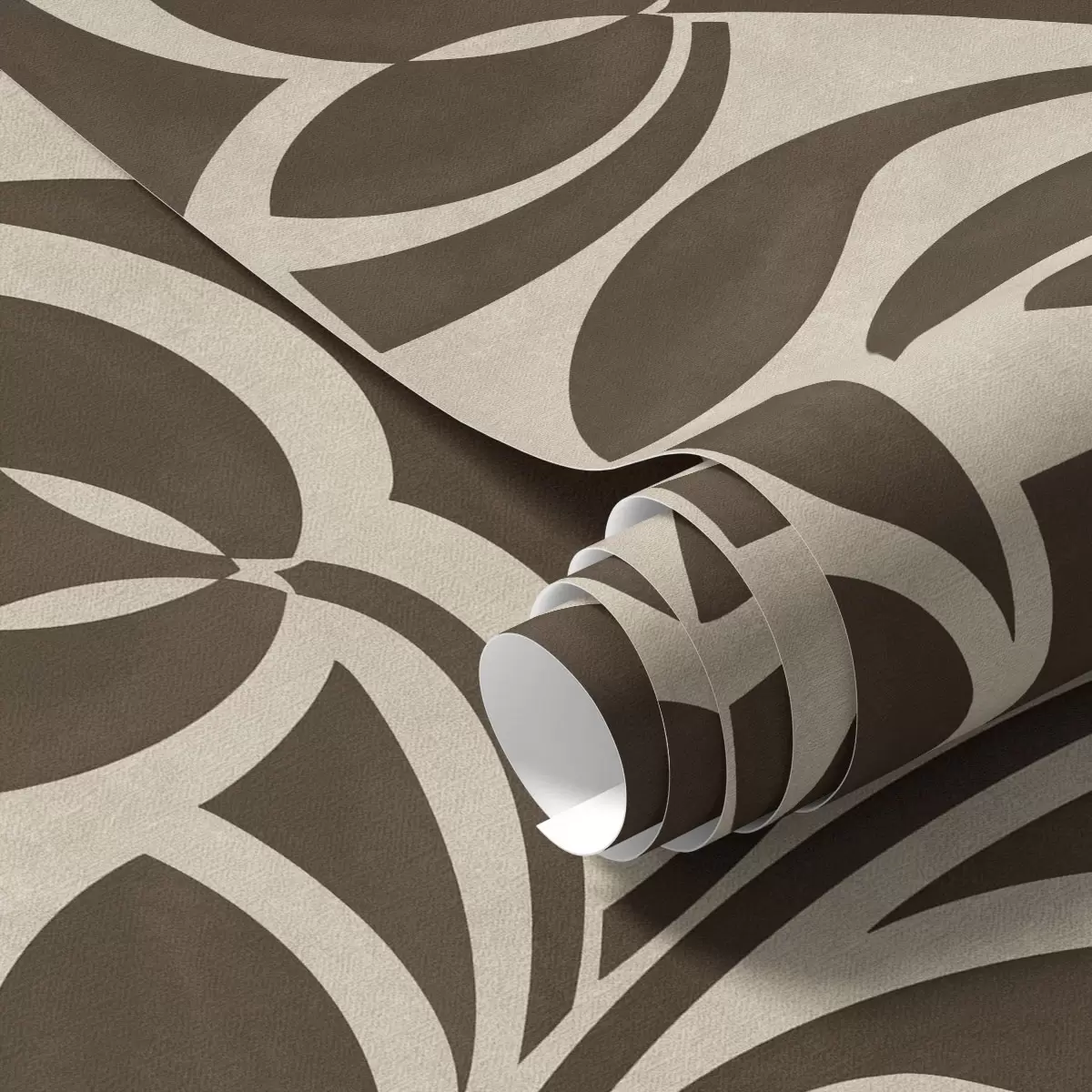 Papel tapiz Siluetas geométricas de hojas, marrón oscuro sobre beige Nr. a00679v1