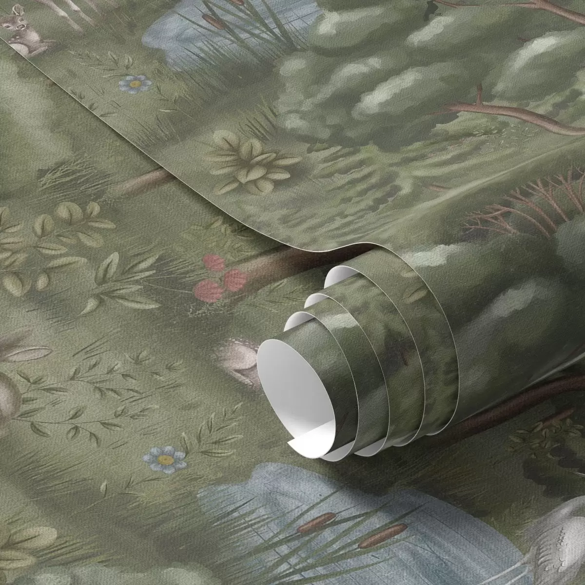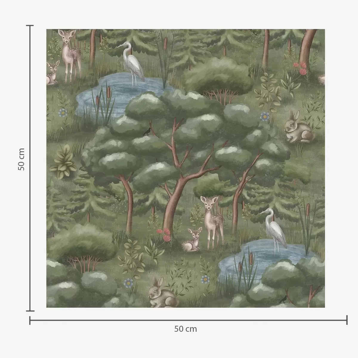 Papel tapiz Claro del bosque con cervatillos, conejos y garzas Nr. a00680