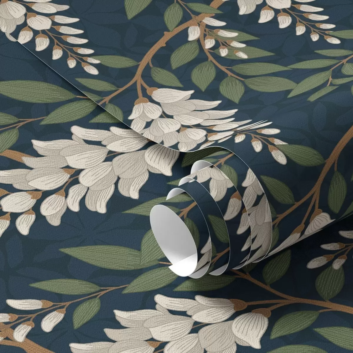 Papel pintado Glicinia marfil sobre fondo verde azulado intenso a00694v1